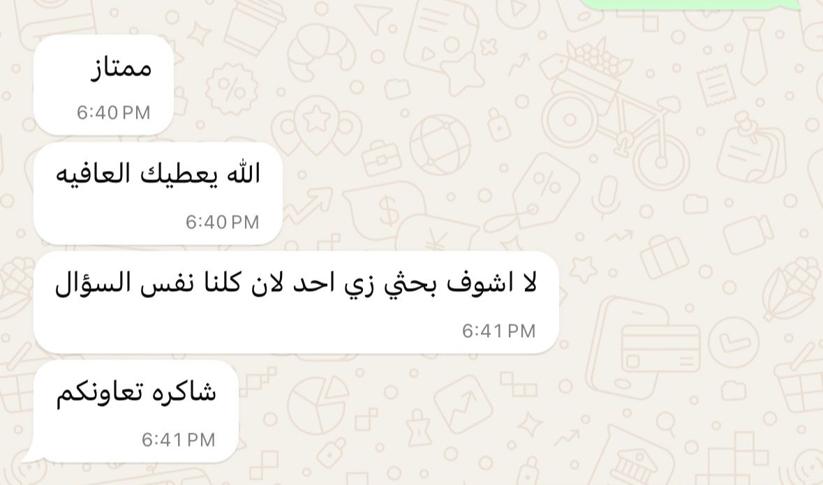 “الخدمة ممتازة وسريعة، ما توقعت يشرحون لي التفاصيل بهالوضوح. حسيت أني أتعلم وأستفيد مو بس أستلم البحث.”